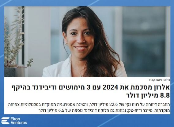 Elron Ventures Summarizes 2024 with 3 Exits and an $8.8 Million Dividend (Hebrew)